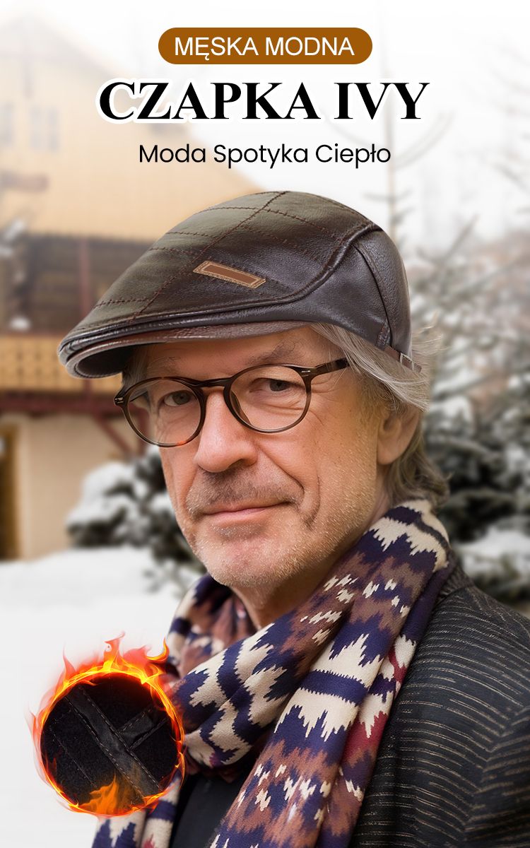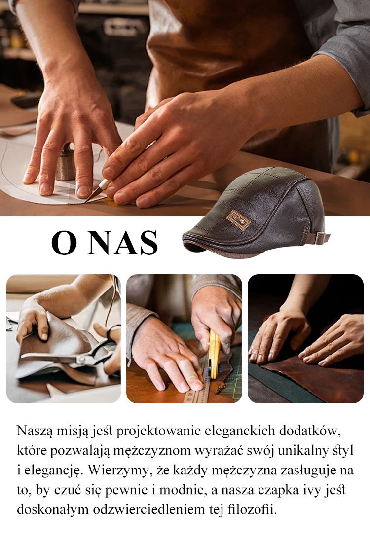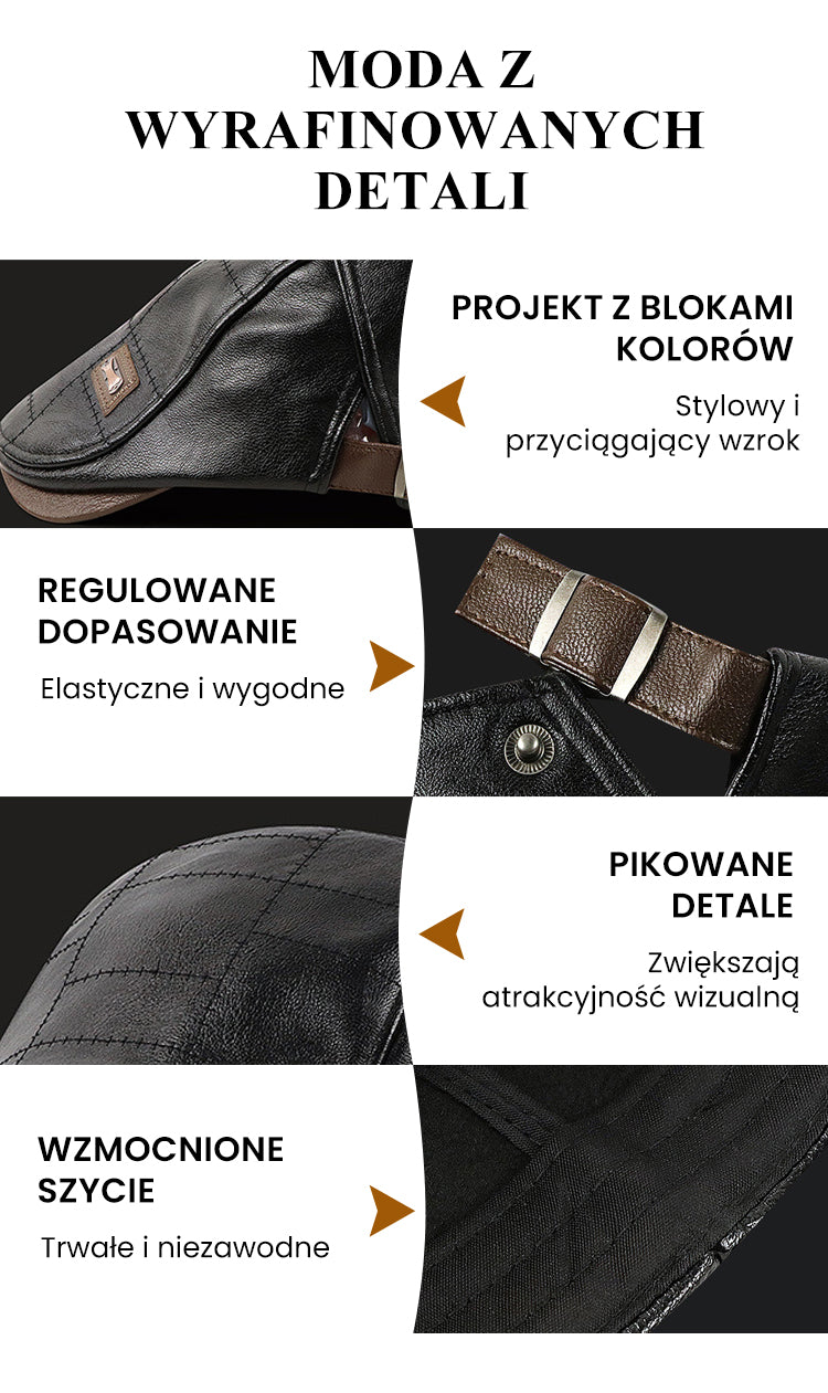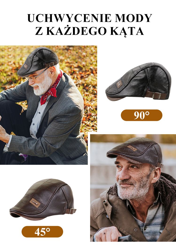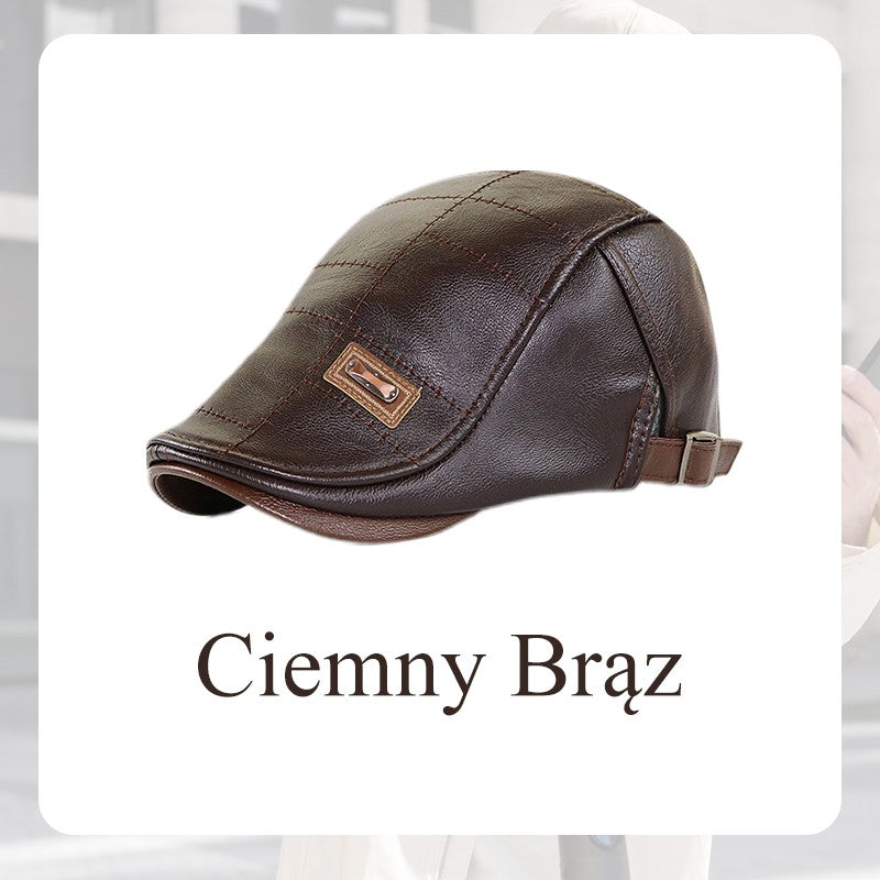 Męska Modna Czapka Ivy ze Skóry PU